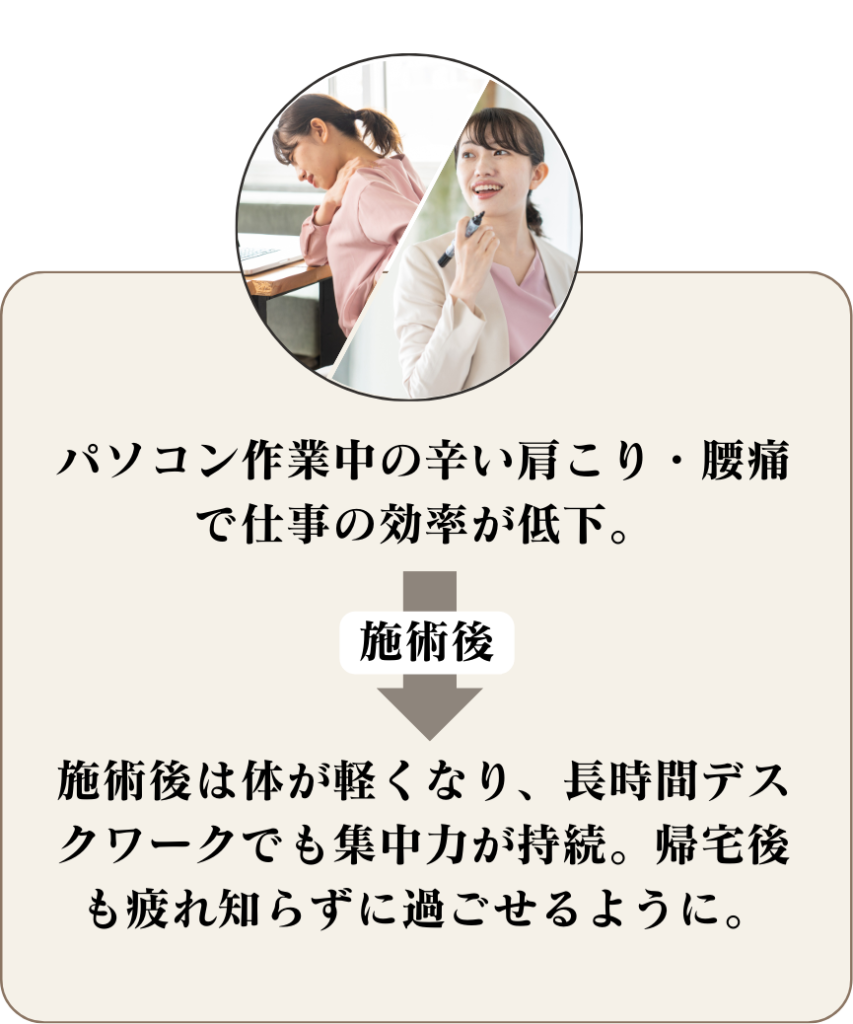 1回の施術で大きく変わる。体が軽くなる喜びを体感しませんか?