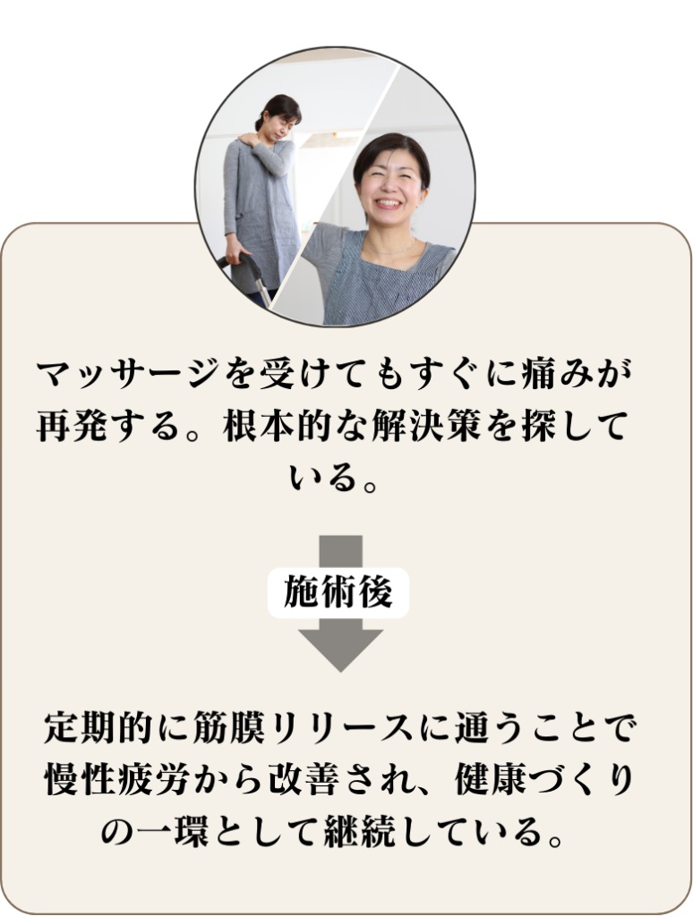 慢性的な凝り/痛みの根本改善・柔軟性の向上