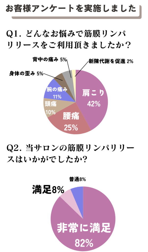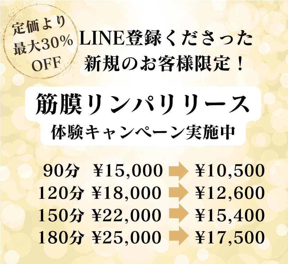 ————————筋膜リリースは、体のコリ・痛みを根本から解決する最新のボディケア技術です。デスクワークや運動不足によるコリ・痛みは、筋肉を覆う「筋膜」の硬化が原因です。筋膜リリースは深層の筋膜にアプローチすることで、肩こり、腰痛、姿勢の悪さ、むくみなどの様々な不調を改善します。短期間で効果を実感でき、筋肉の本来の柔軟性を取り戻すことで、効果が長く持続します。————————