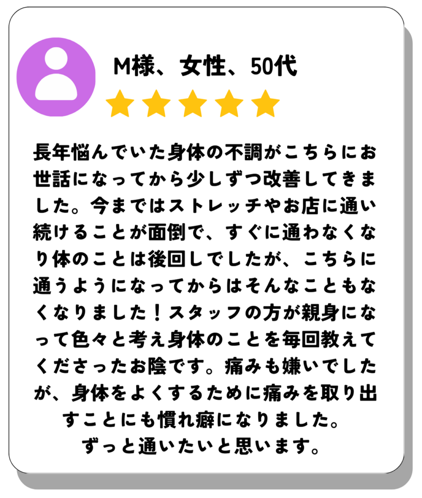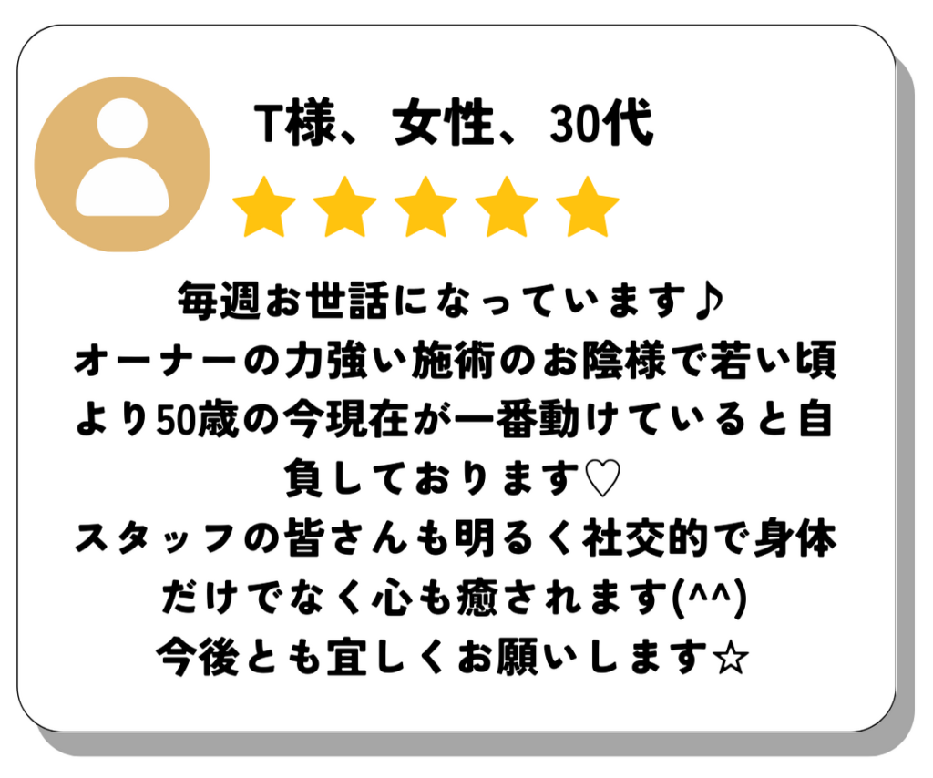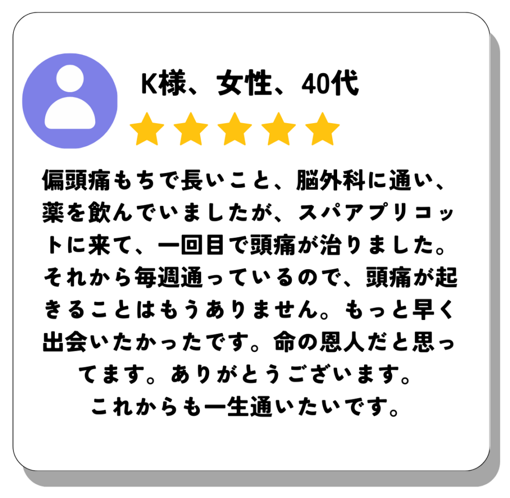 東京で体感できます。施術に対するお客様の声を一部ご紹介いたします。